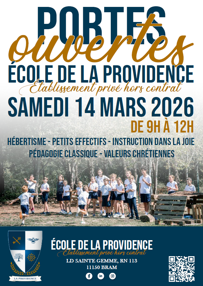Situé entre Castelnaudary et Carcassonne, La Providence est un établissement scolaire privé catholique hors-contrat accueillant des enfants de la toute petite section à la classe de 3ème. Déclaré à l’Académie de Montpellier, il a été créé par des familles, pour des familles ayant fait le choix d’une pédagogie structurante classique et des valeurs essentielles que sont le respect bienveillant et la confiance attentive.